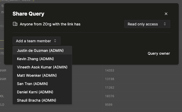 После применения вышеизложенного запрос теперь может быть просмотрен (и выполнен) всеми членами команды, имеющими доступ к SQL консоли для службы.