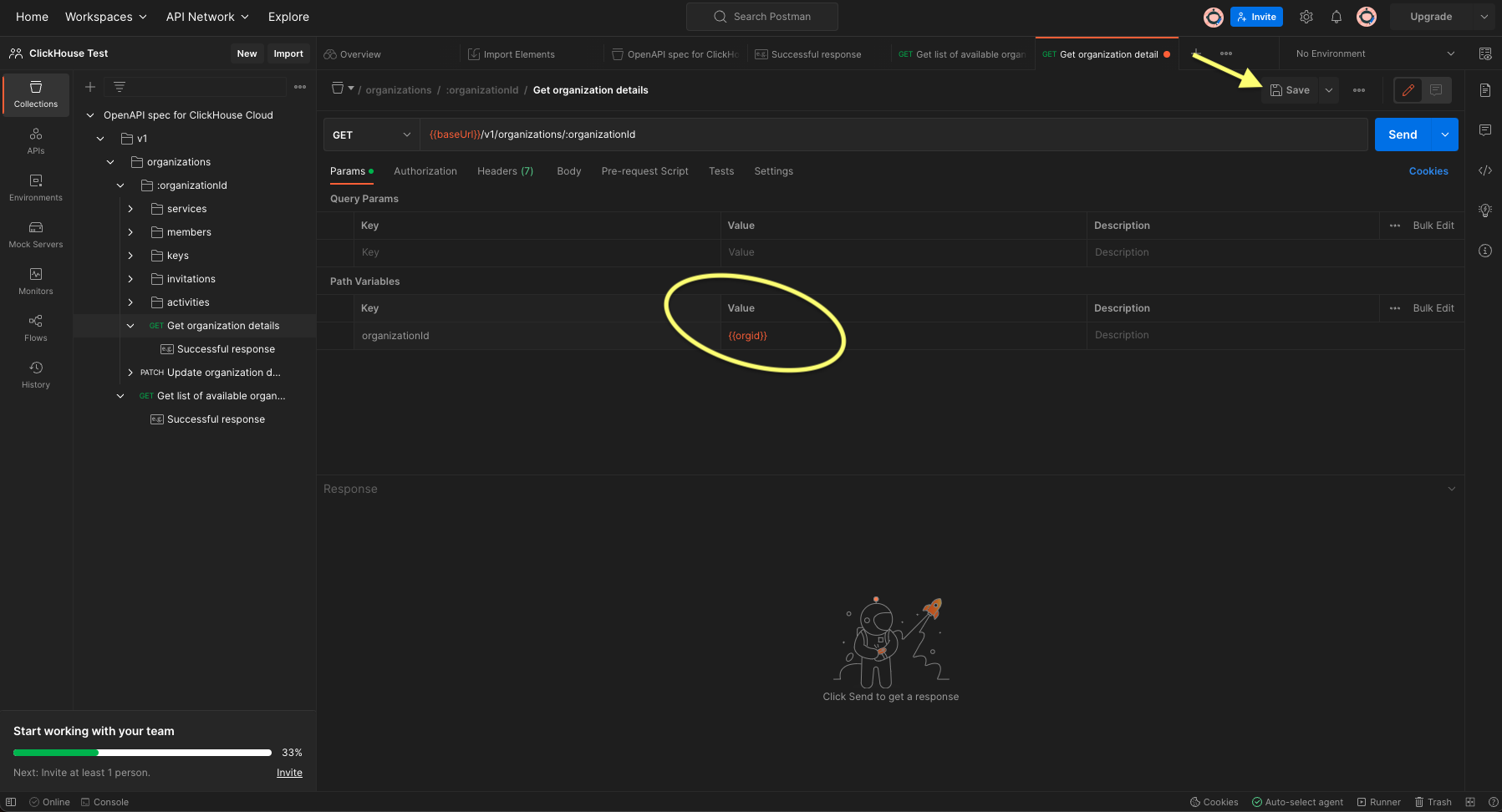 organizationidперейдите к "GET детали организации": - В меню среднего фрейма в разделе Params требуется