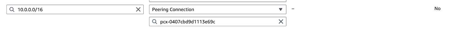 - Выберите "Пиринговое соединение" и идентификатор пирингового соединения для цели.