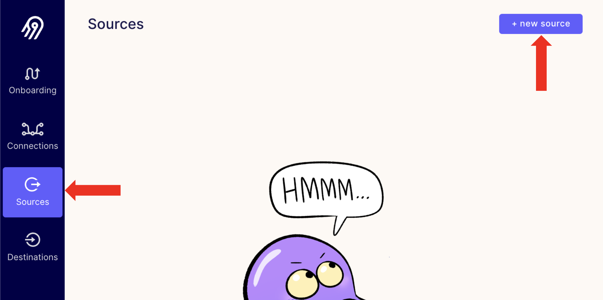 Внутри Airbyte выберите страницу "Sources" и добавьте новый источник типа файл.