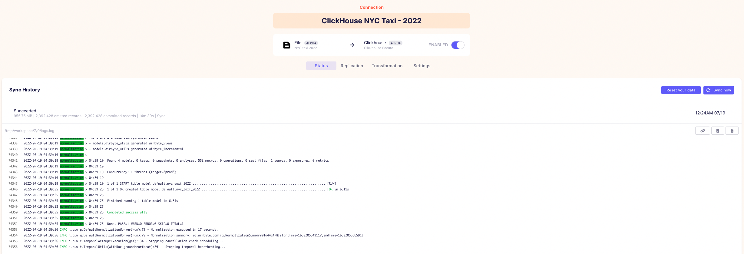 Поздравляем - вы успешно загрузили данные такси Нью-Йорка в ClickHouse с использованием Airbyte!