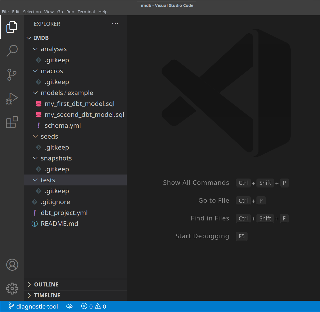 3. На этом этапе вам понадобится текстовый редактор на ваш выбор. В приведенных ниже примерах мы используем популярный VS Code. Открыв директорию IMDB, вы должны увидеть набор файлов yml и sql: