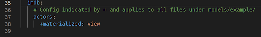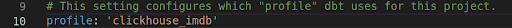 4. Обновите ваш файл dbt_project.yml, чтобы указать нашу первую модель - actor_summary и установить профиль на clickhouse_imdb.
