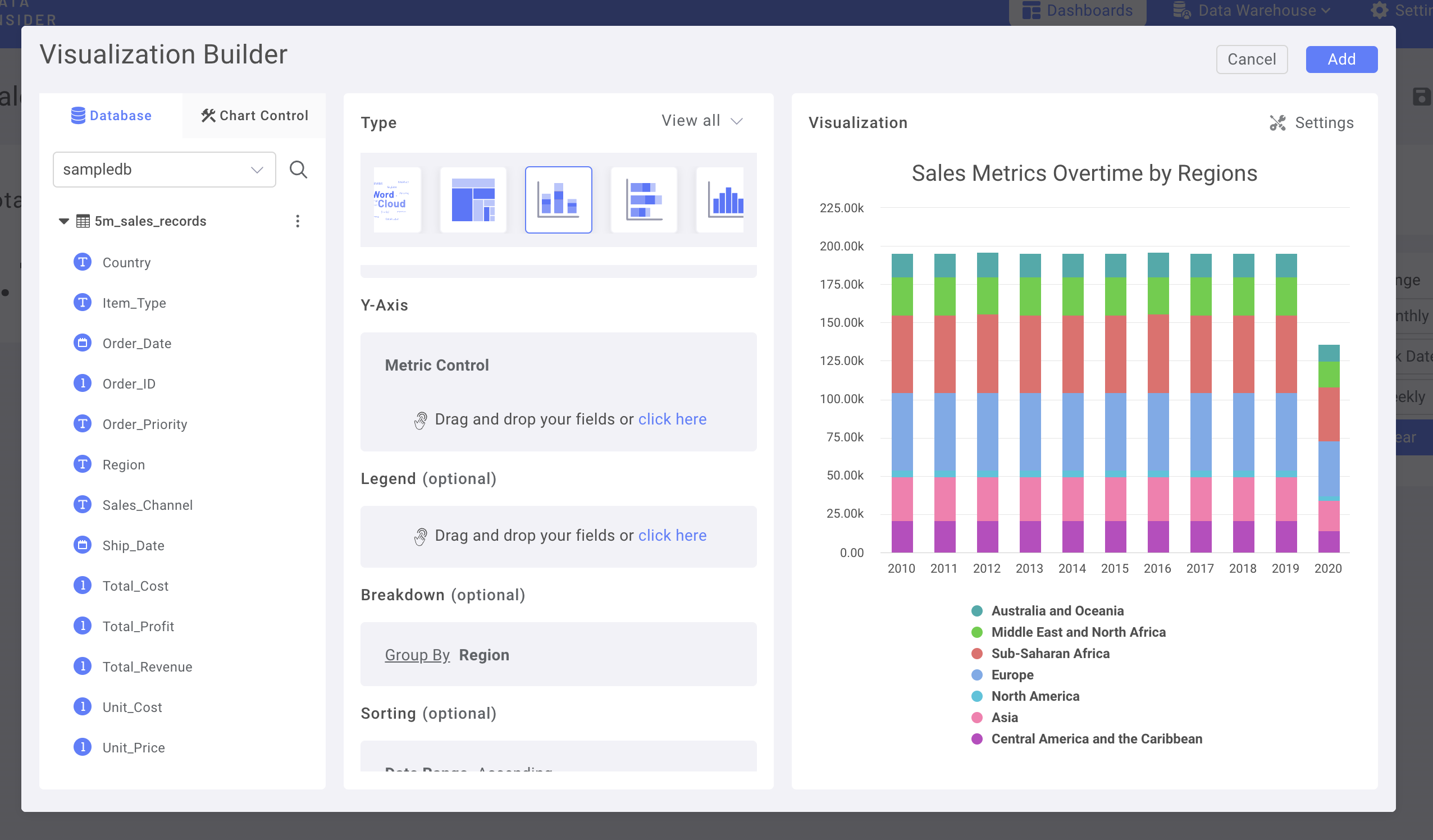 Добавьте колонку Регион в Разбиение.